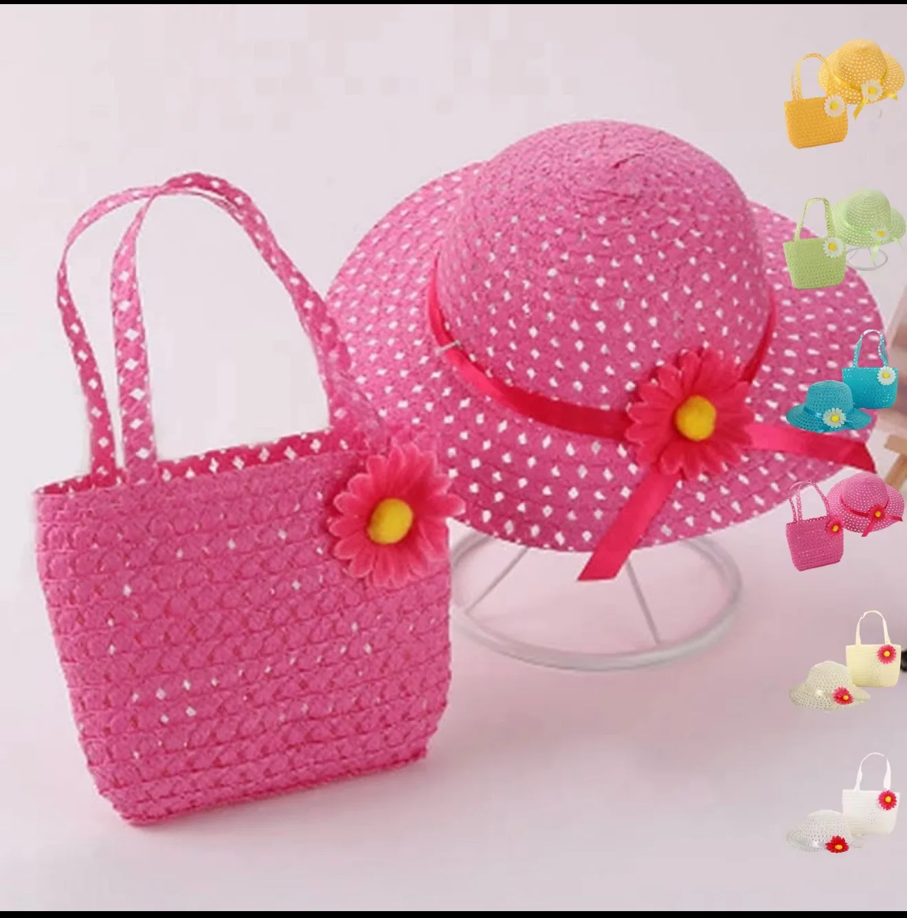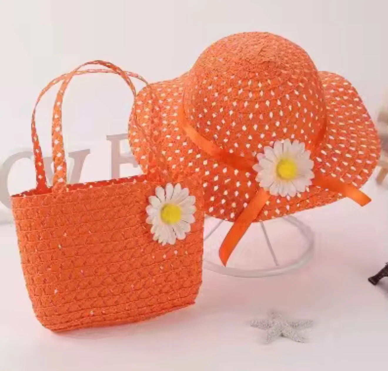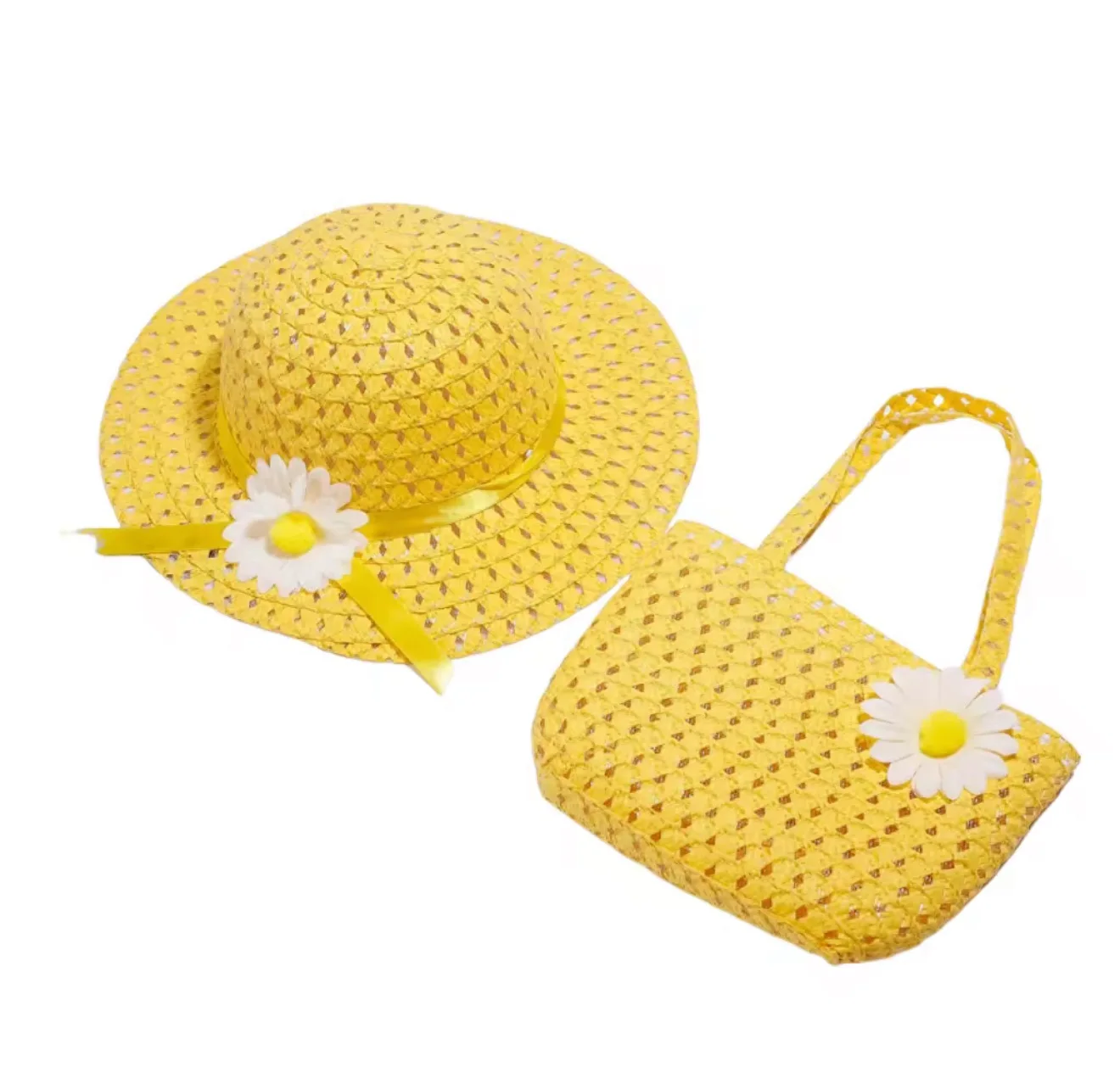 屋外活動のための夏冬と春の季節子供の女の子のためのカスタムポータブルストローバッグと帽子